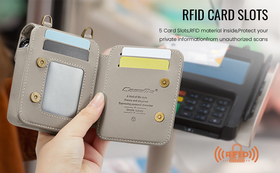 5 Card Slots + Flip Cover Pocket: Organize essentials with 1 full-size card slot, 1 half-size slot for folded bills/receipts, and a secure flip compartment for IDs or frequent-use cards.